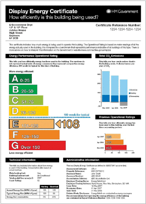 The DEC should be clearly displayed at all times, A3 size in a prominent place clearly visible to the public. A DEC is accompanied by an Advisory Report, but does not need to be displayed and this lists effective measures to improve the energy rating of the building.