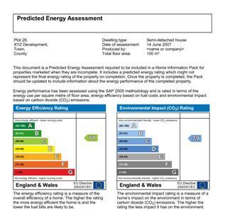 New properties marketed for sale while still under construction, such as off plan sales require a Predictive Energy Assessment (PEA). This shows a predicted energy efficiency rating and environmental impact rating for the property from SAP calculations done at the initial design stage.