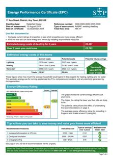 These recommended measures are shown together with indicative potential cost savings for the property calculated with these package of measures as installed. Also a potential overall energy efficiency and environmental impact improvement rating is given as a comparison, if the recommended measures are undertaken.
